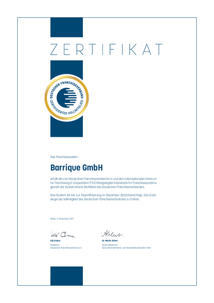 Barrique ist ein Familienunternehmen, ein Konzept das sich wie ein Roter Faden durch unser Konzept zieht. Wir möchten Dir eine gute und sichere Selbstständigkeit ermöglichen, das geht nur wenn wir wie eine Familie zusammen arbeiten. Wir lassen Dich in keinem Schritt alleine.